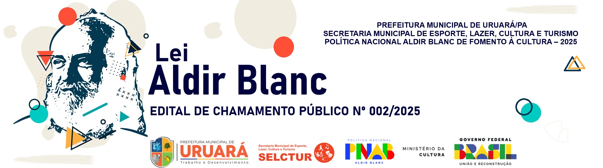 A PREFEITURA MUNICIPAL DE URUARÁ/PA, através da SECRETARIA MUNICIPAL DE ESPORTE, LAZER, CULTURA E TURISMO, torna público o presente EDITAL DE CHAMAMENTO PÚBLICO, elaborado com base na Lei nº 14.399/2022 (Lei PNAB), na Lei nº 14.903/2024 (Marco regulatório do fomento à cultura), no Decreto nº 11.740/2023 (Decreto PNAB), no Decreto nº 11.453/2023 (Decreto de Fomento) e na Instrução Normativa MINC nº 10/2023 (IN PNAB de Ações Afirmativas e Acessibilidade).